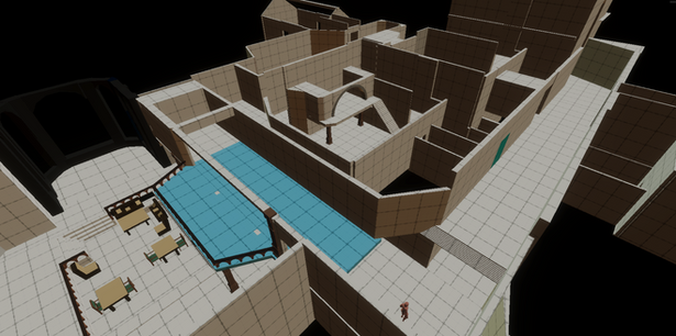 The problem was that we had a maximum of three rooms, because we were limited by the constraints of our only artist at that stage of the project. So we came up with a few tricks, such as multiplying the number of corridors and using evolving architecture to confuse the player's marks as much as possible.