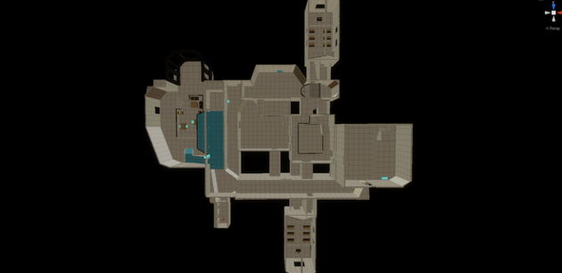 On blockout 1, I wanted to centralise everything around a large corridor and lots of small passages that aren't shown to the player from the start. Besides, the rooms are quite large and have multiple access points to confuse the player.